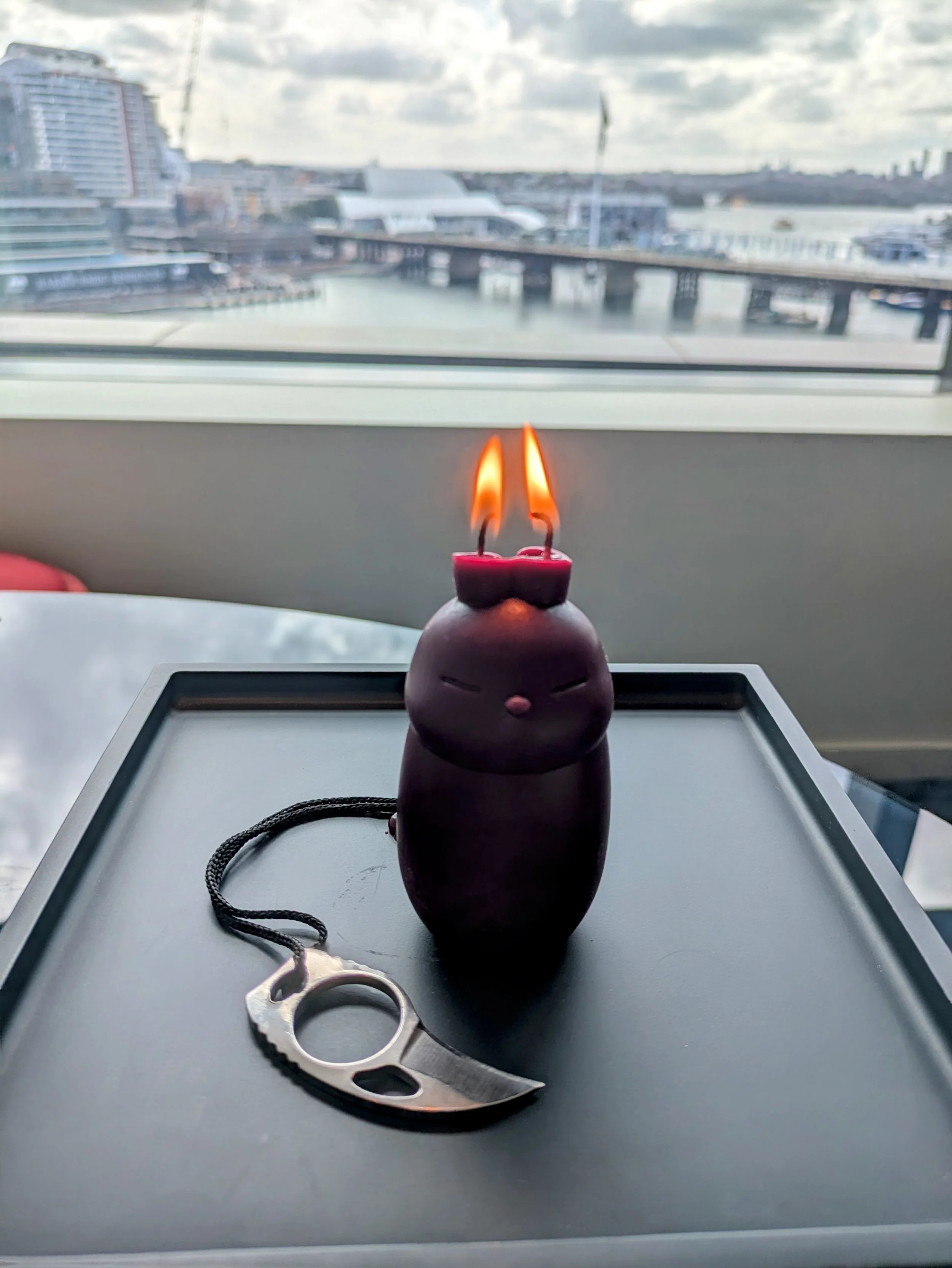 Wax play birthday candle and knife at Dominatrix Nina Nyx private party with slave at W hotel Sydney